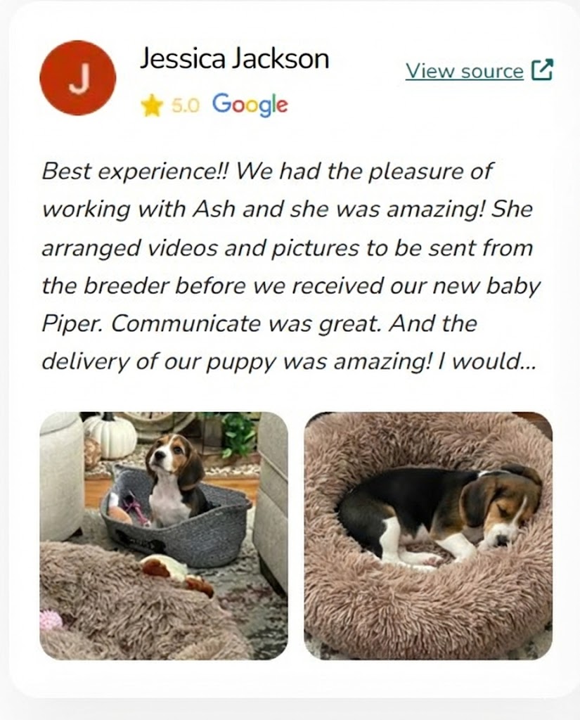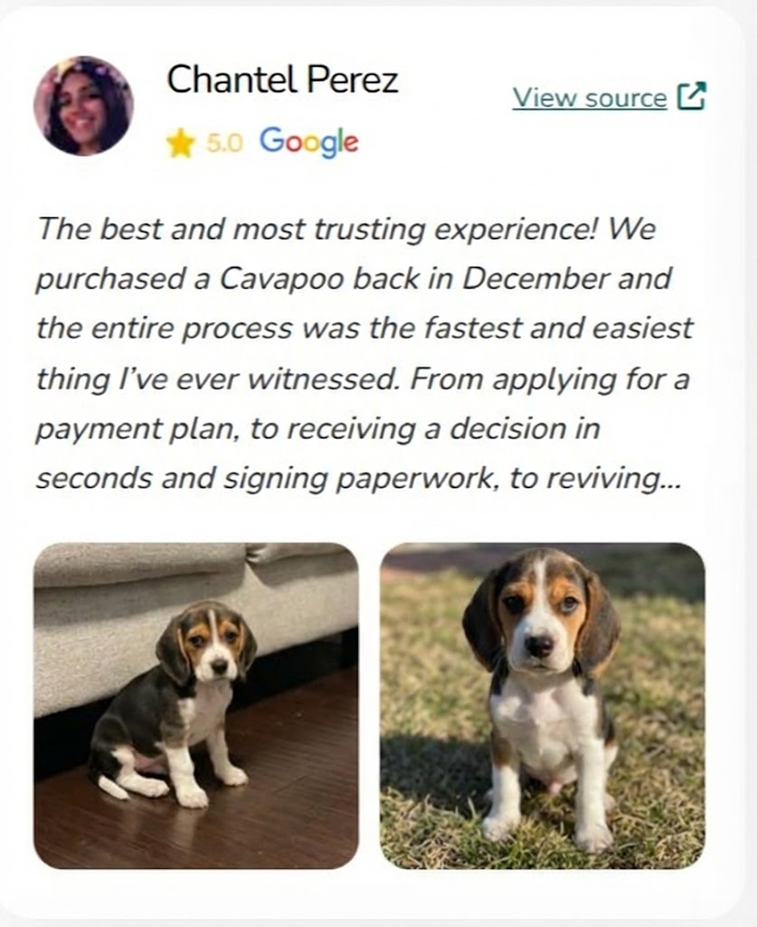 "I can't recommend this website enough for anyone looking to bring a new furry family member into their home. The website's commitment to connecting loving homes with healthy, well-cared-for puppies is truly commendable. My experience with this website was nothing short of amazing, and I am so grateful for the new addition to our family."